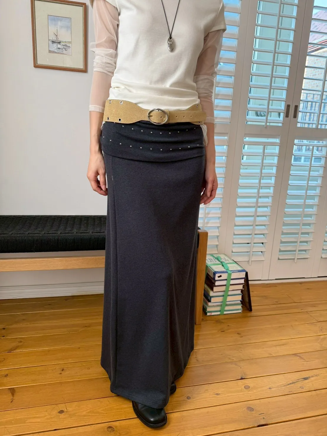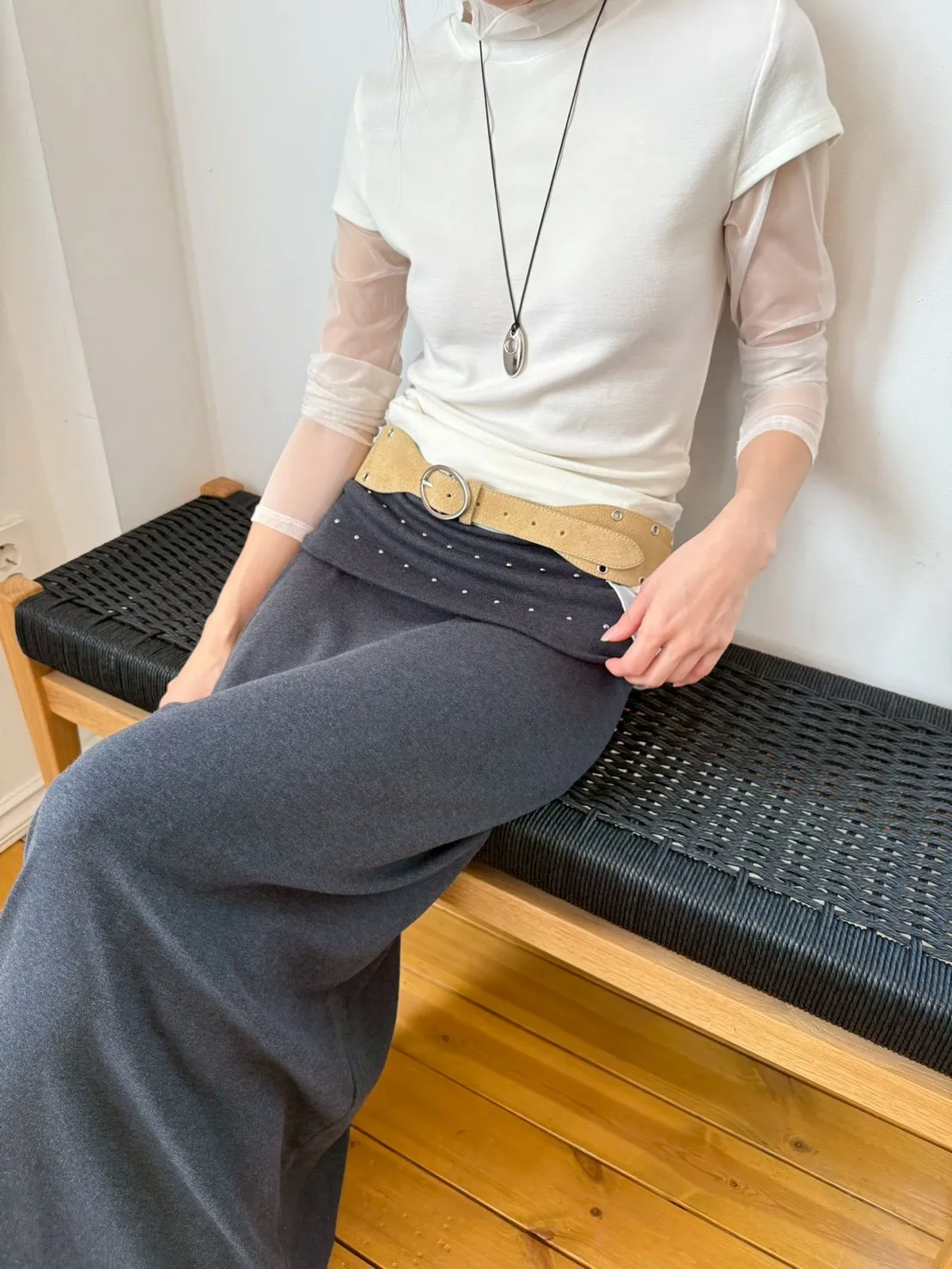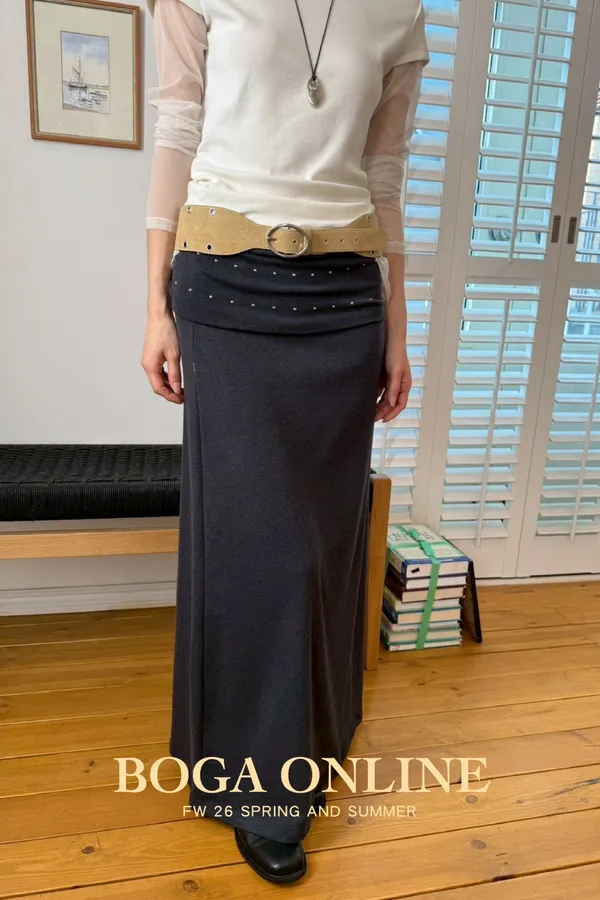 「韓國」低調時髦!反折鉚釘棉裙.深灰