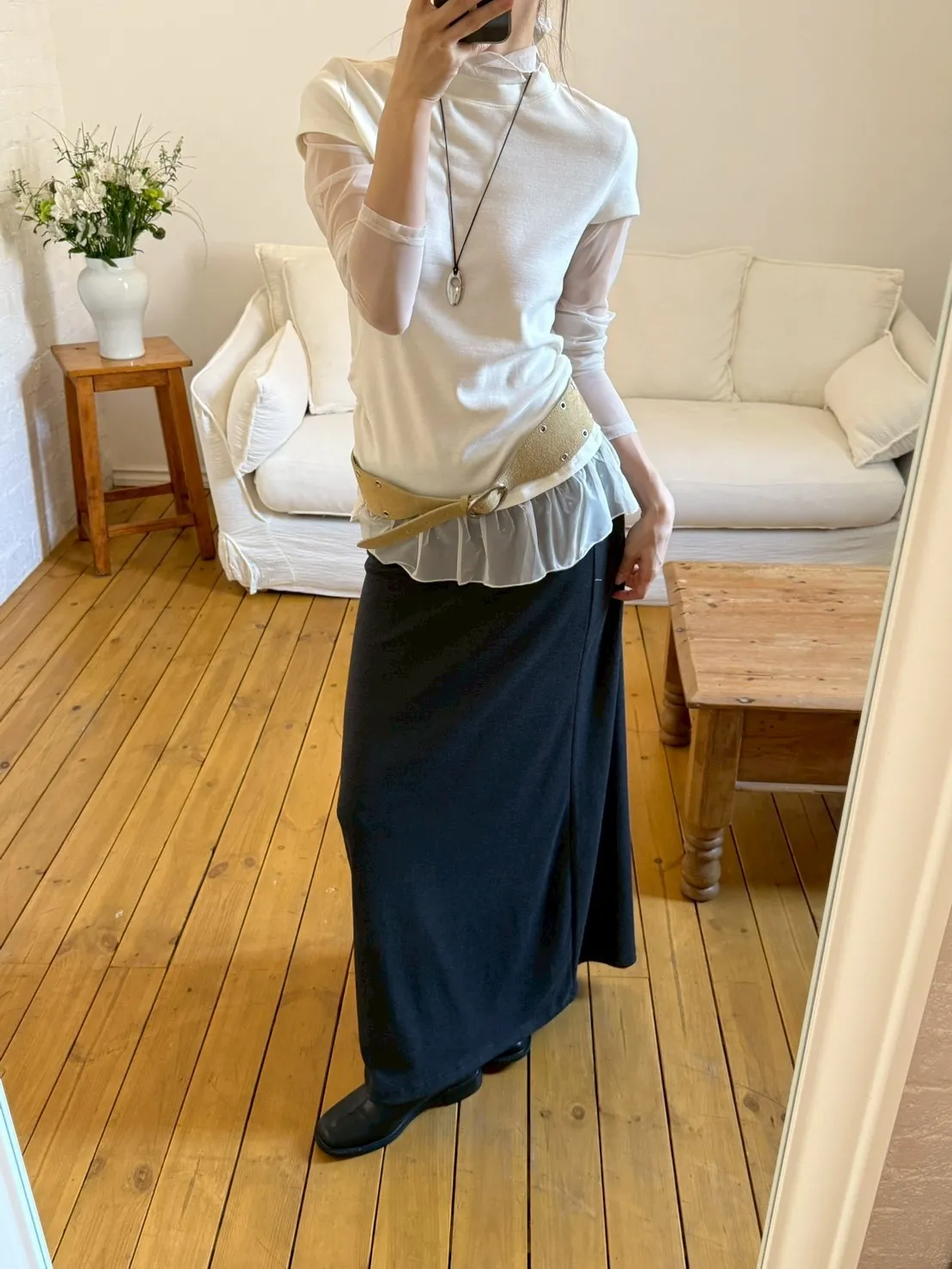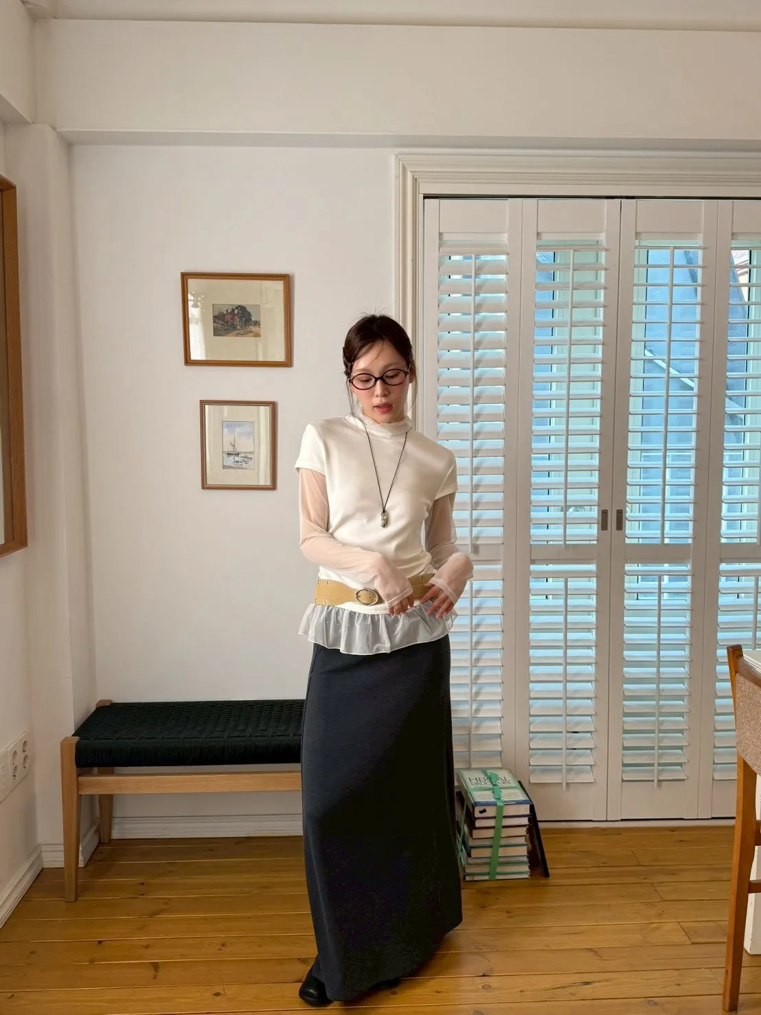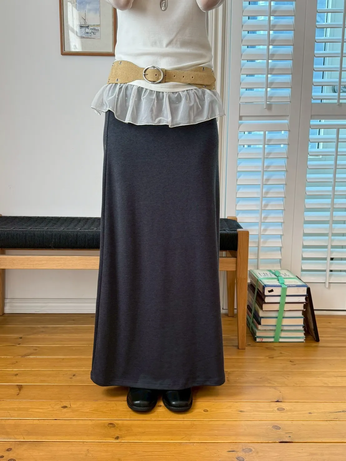 「韓國」低調時髦!反折鉚釘棉裙.深灰
