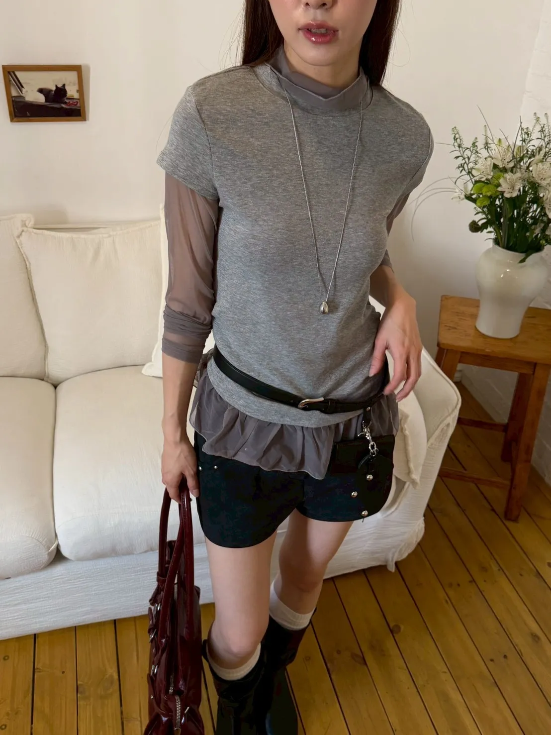 「韓國」蕾絲的浪漫拼接上衣.灰