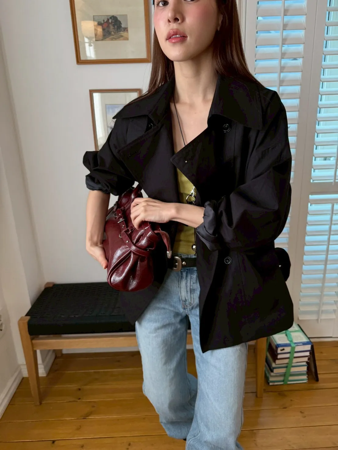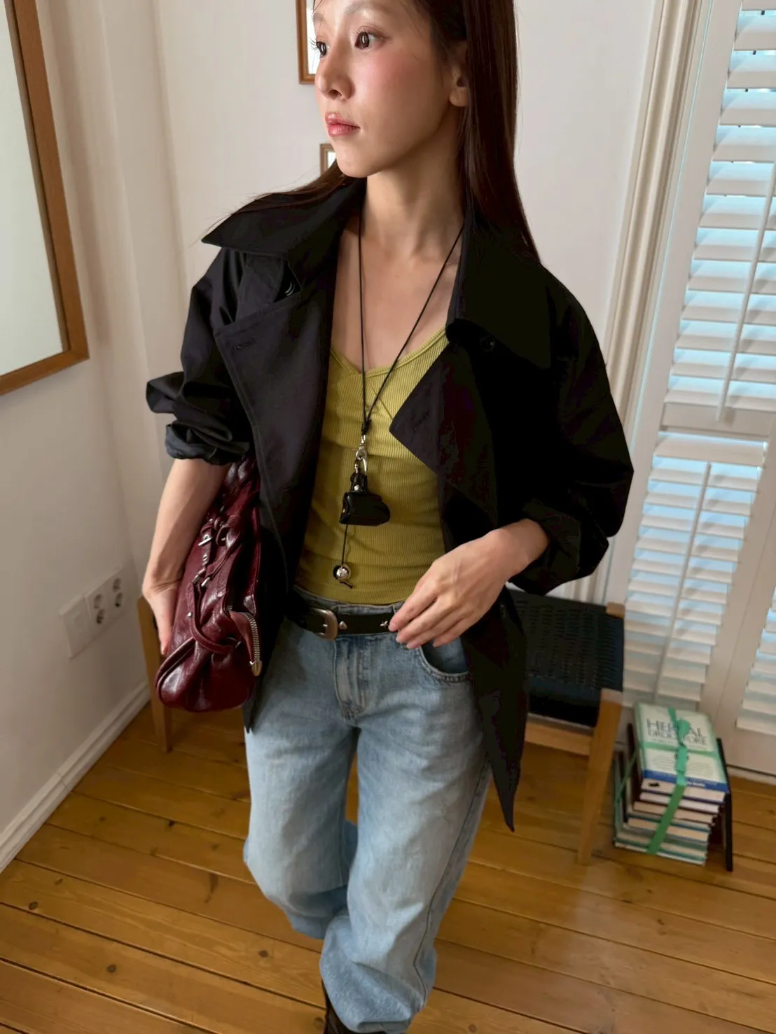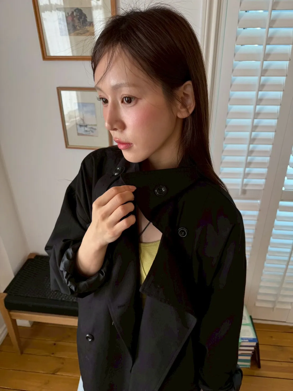 「韓國」聖水專屬!設計款短版風衣外套.黑