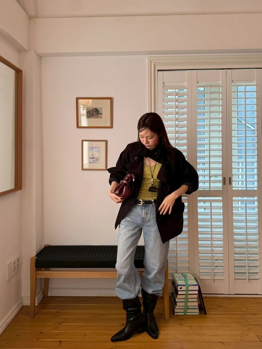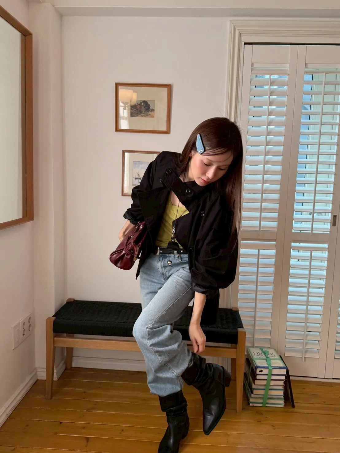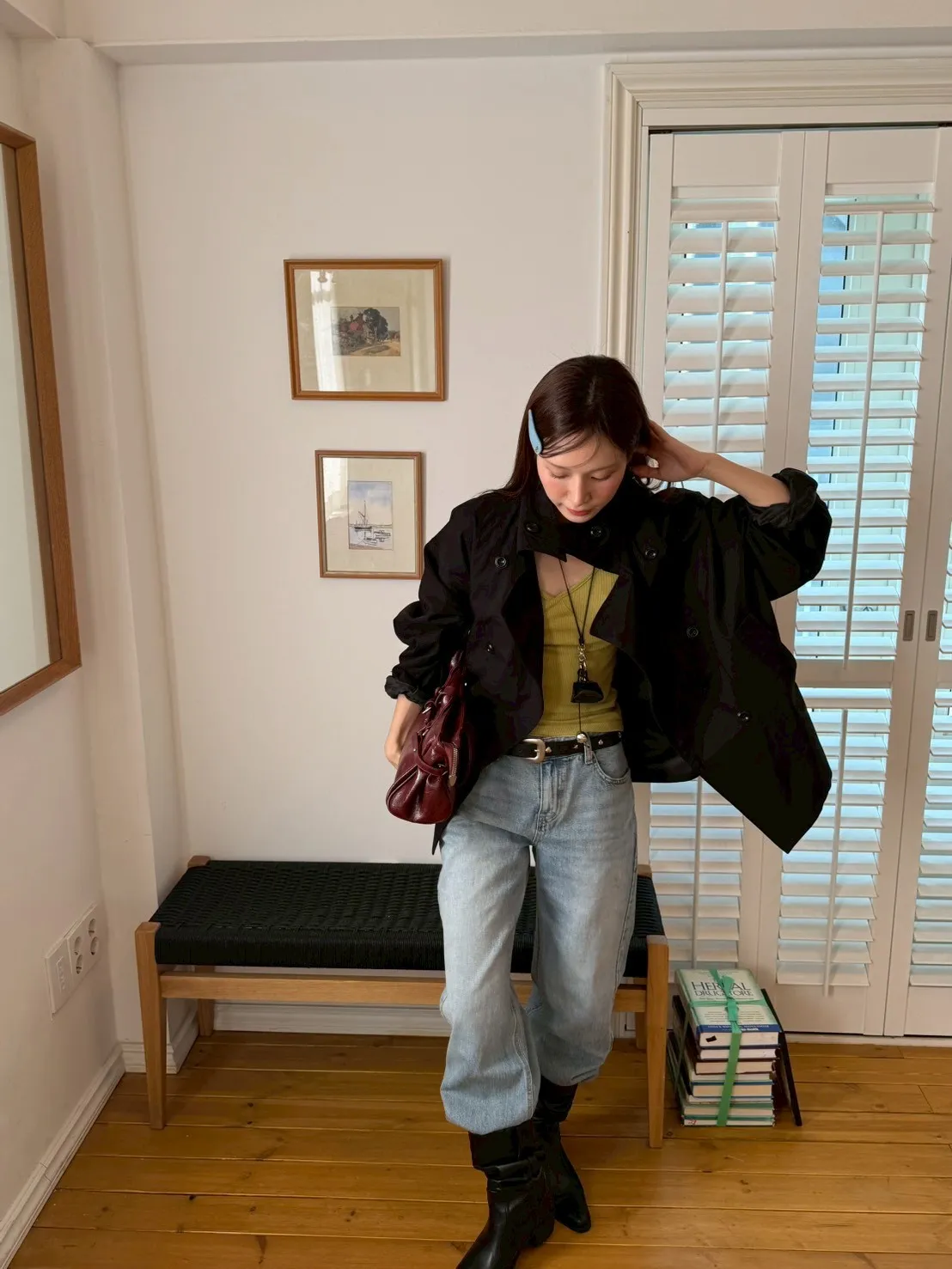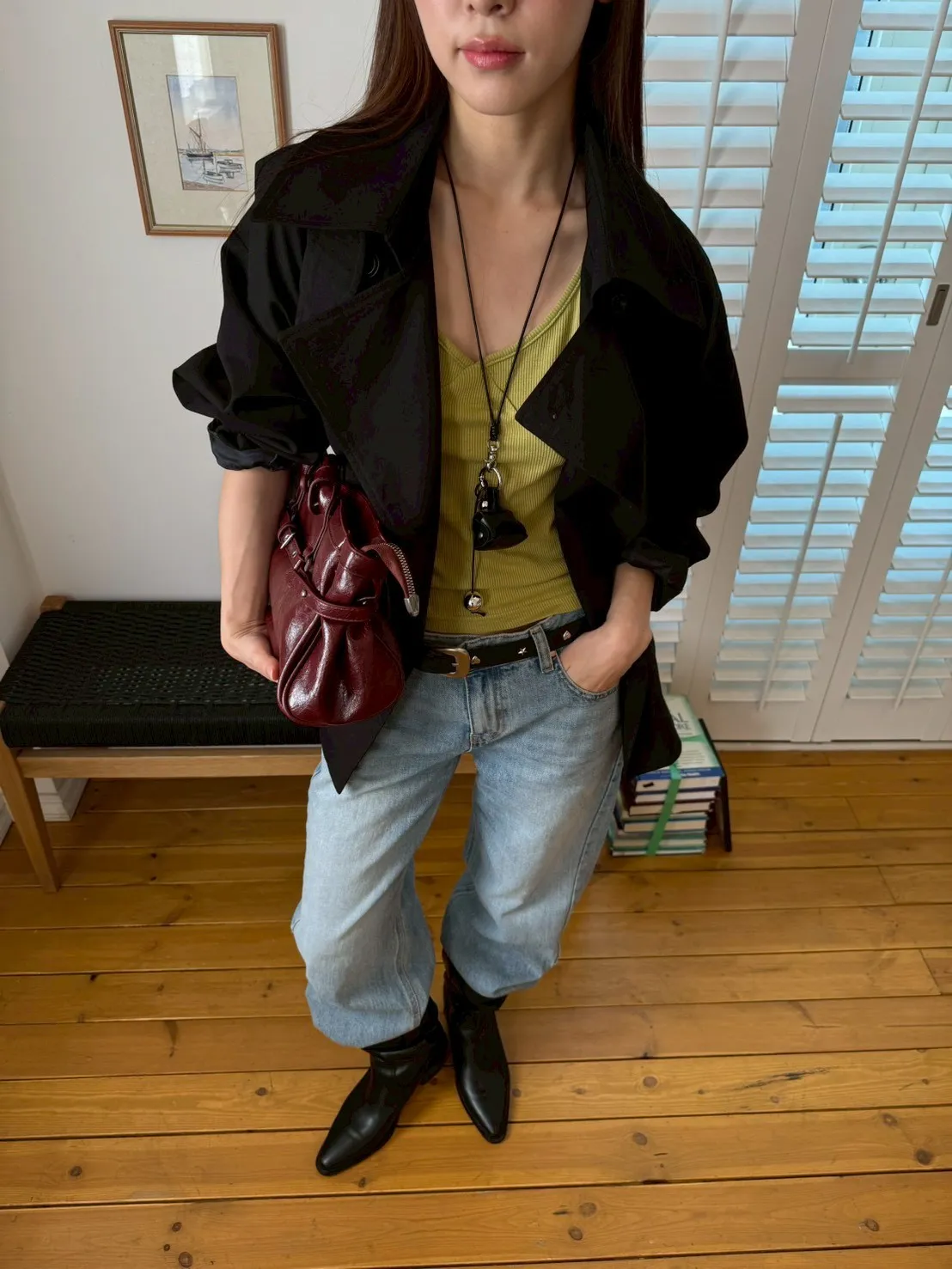 「韓國」聖水專屬!設計款短版風衣外套.黑