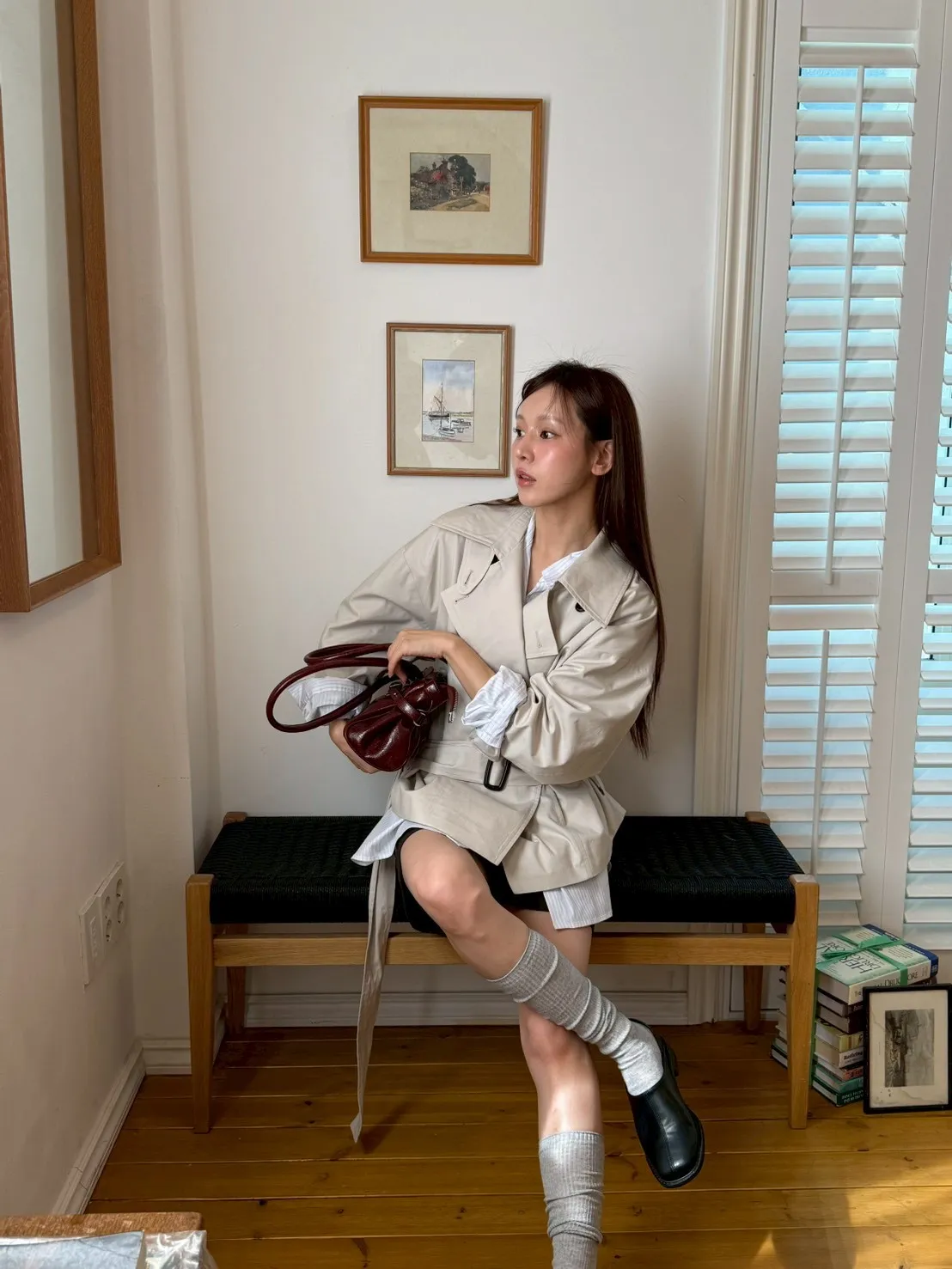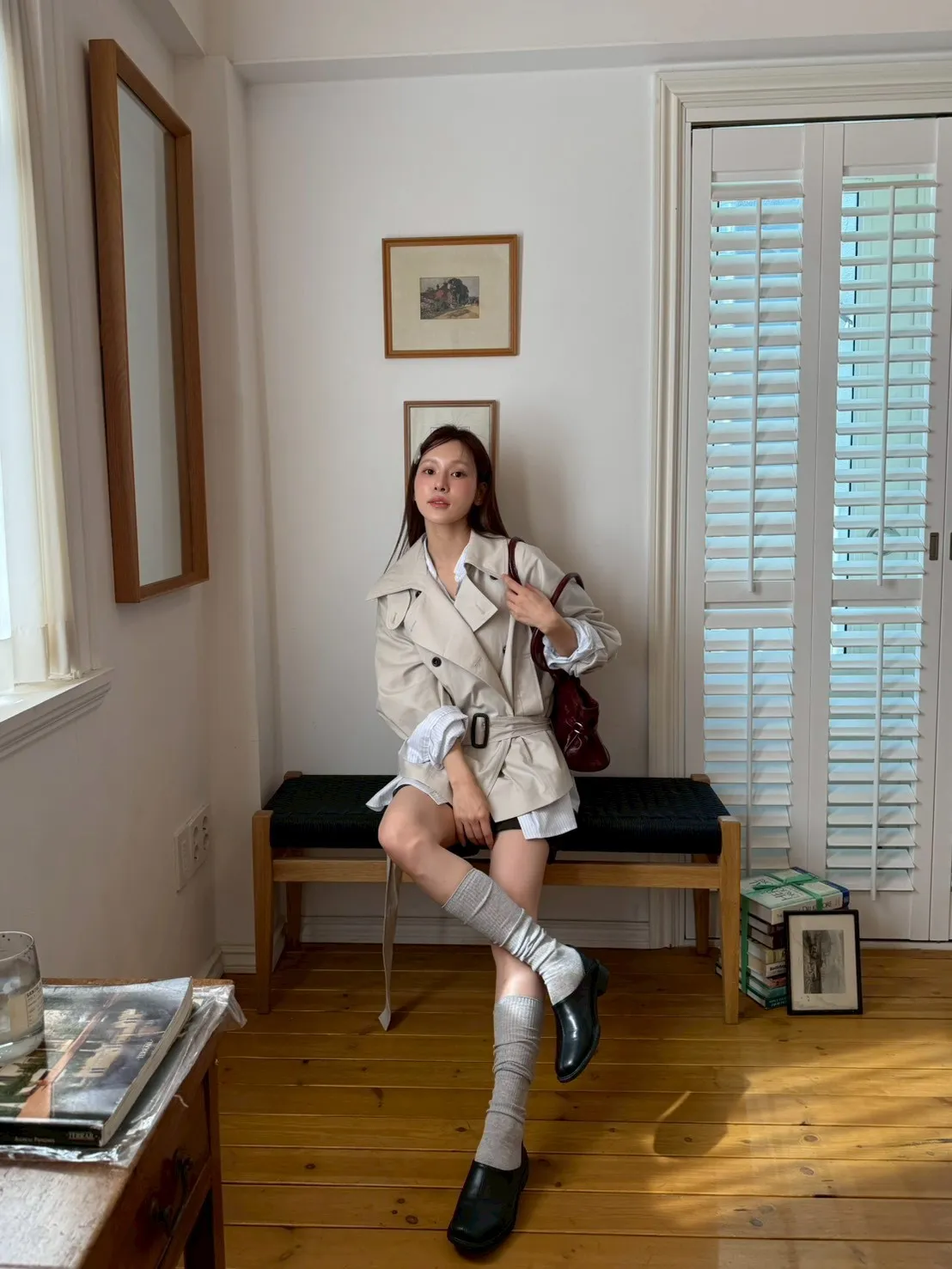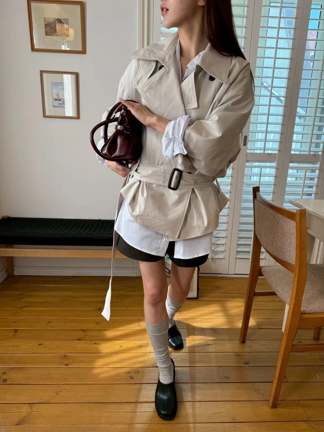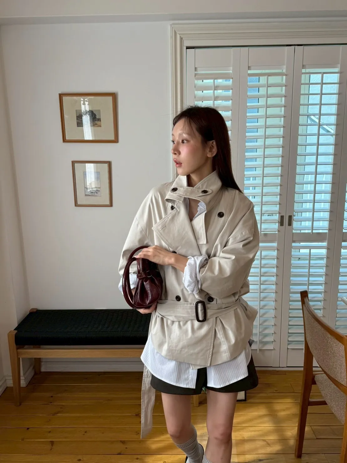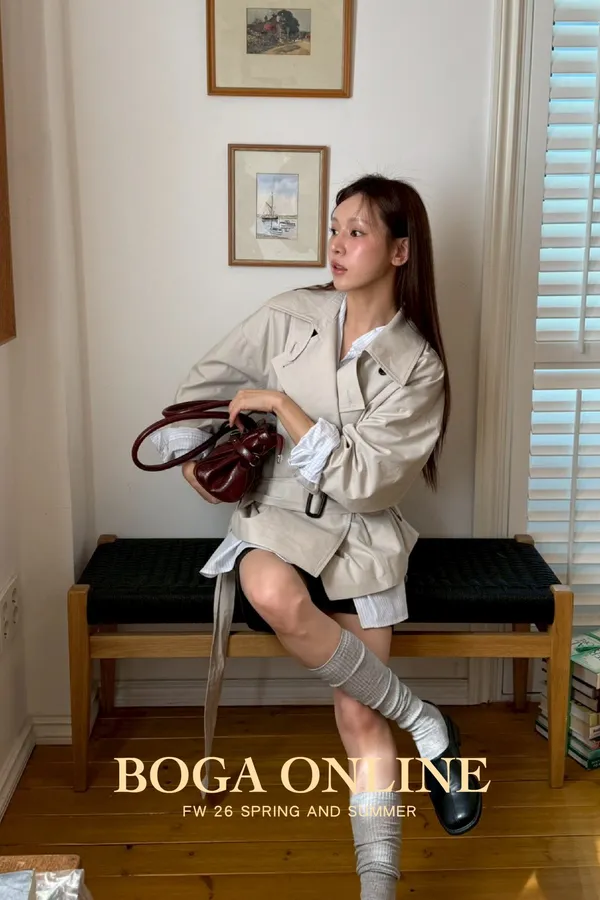 「韓國」聖水專屬!設計款短版風衣外套.米杏