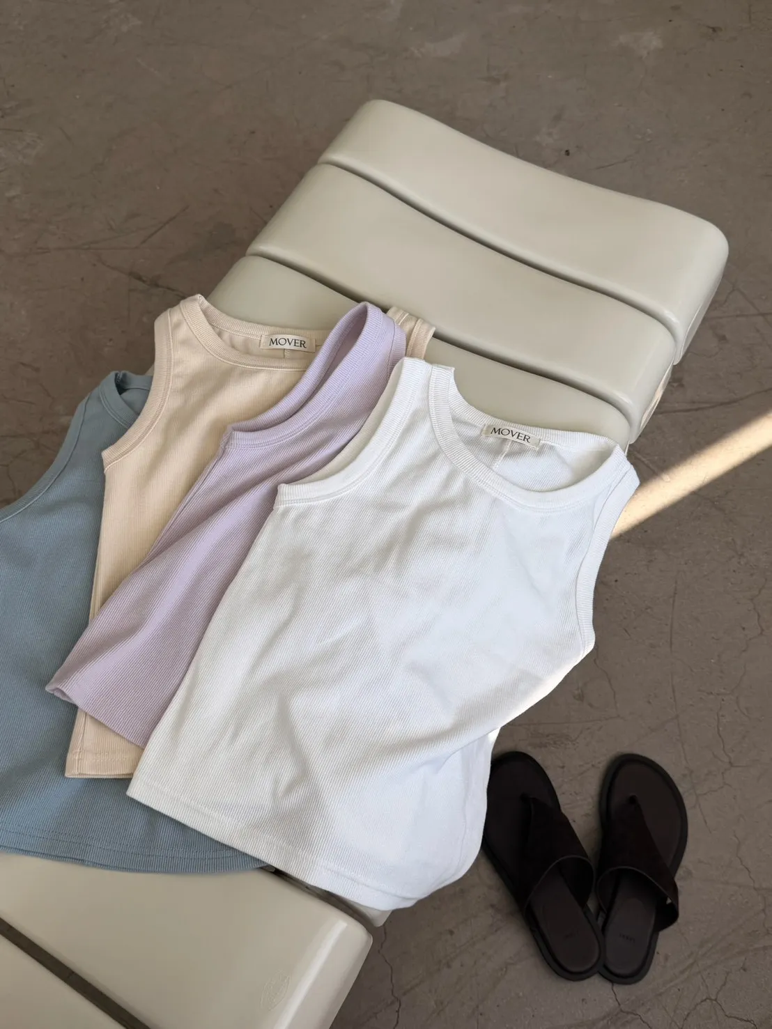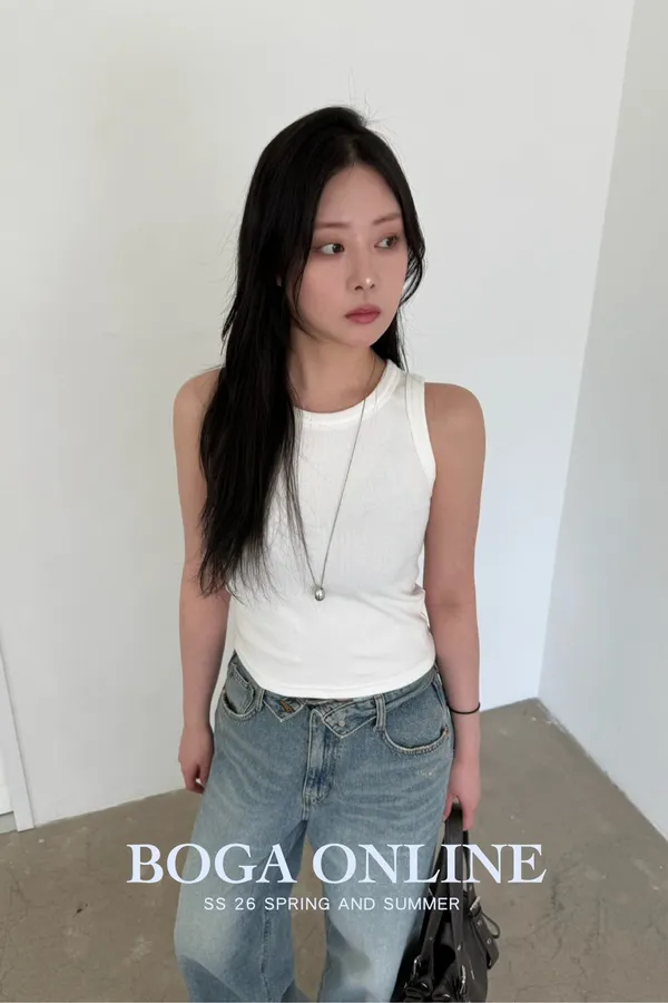 「韓國」蜜桃軟糖削肩背心.白