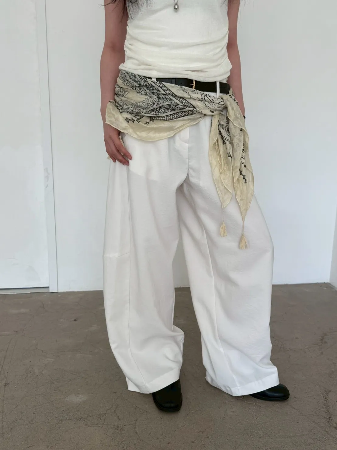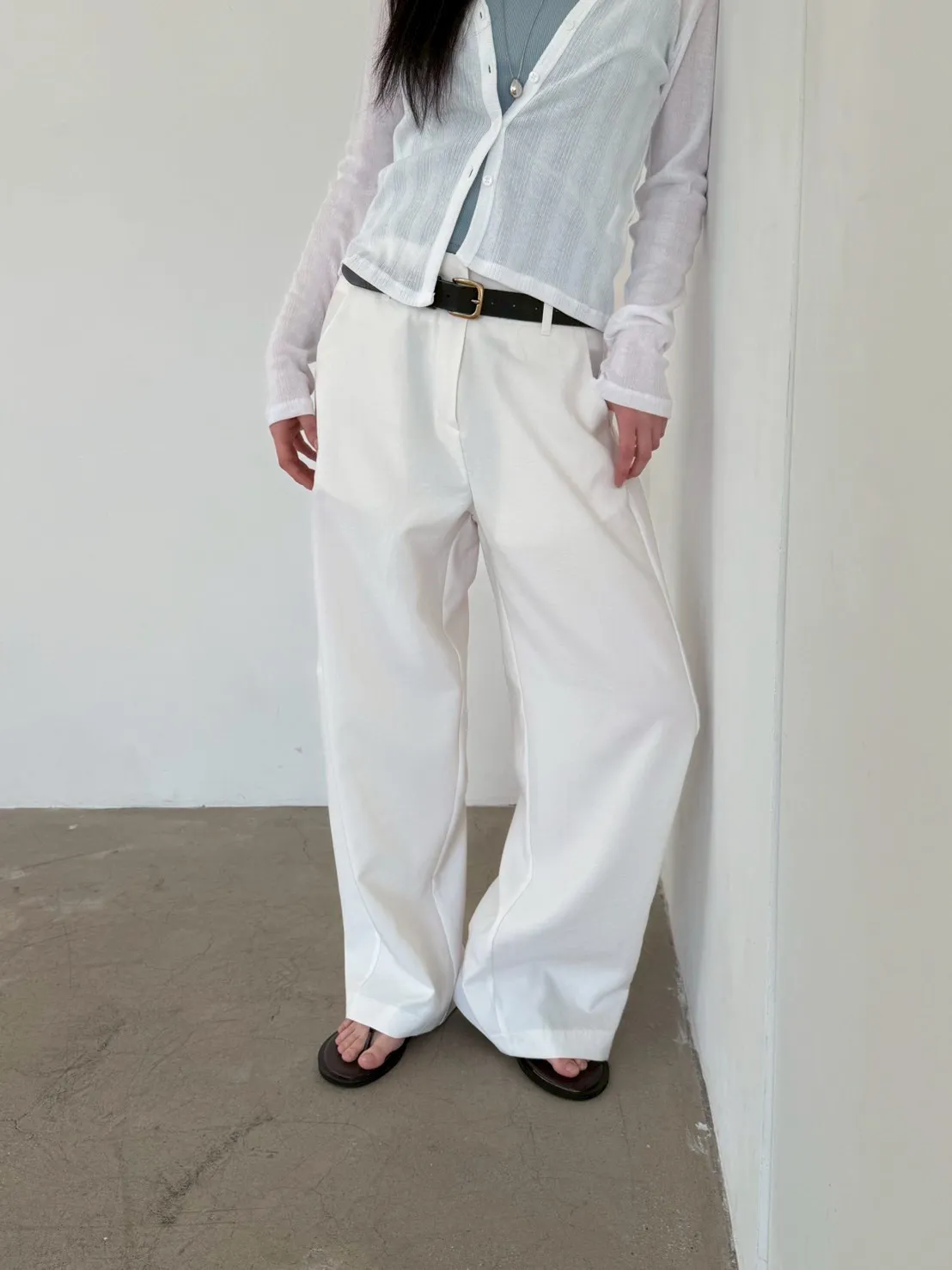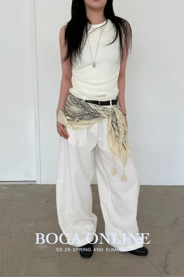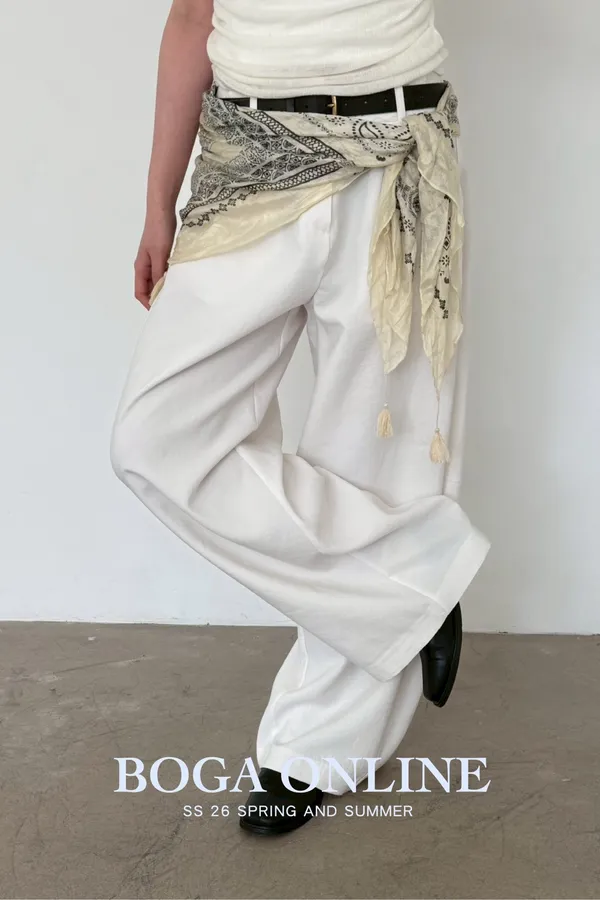 「韓國」鬆弛感垂墜西裝褲.米白