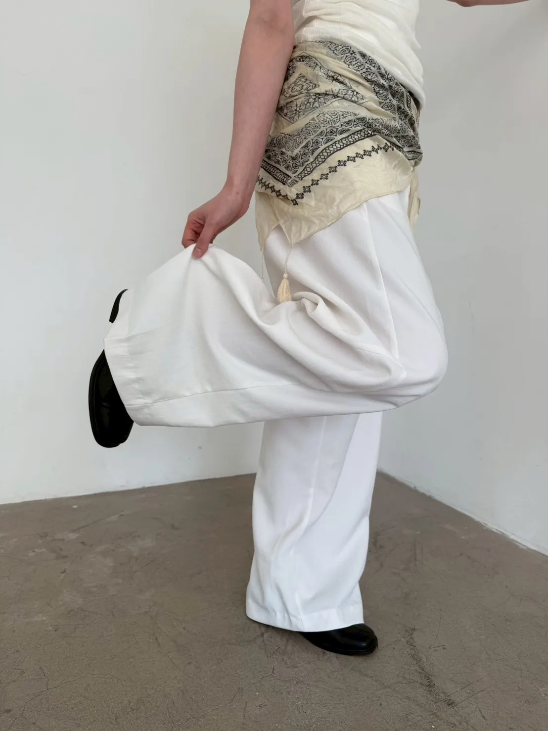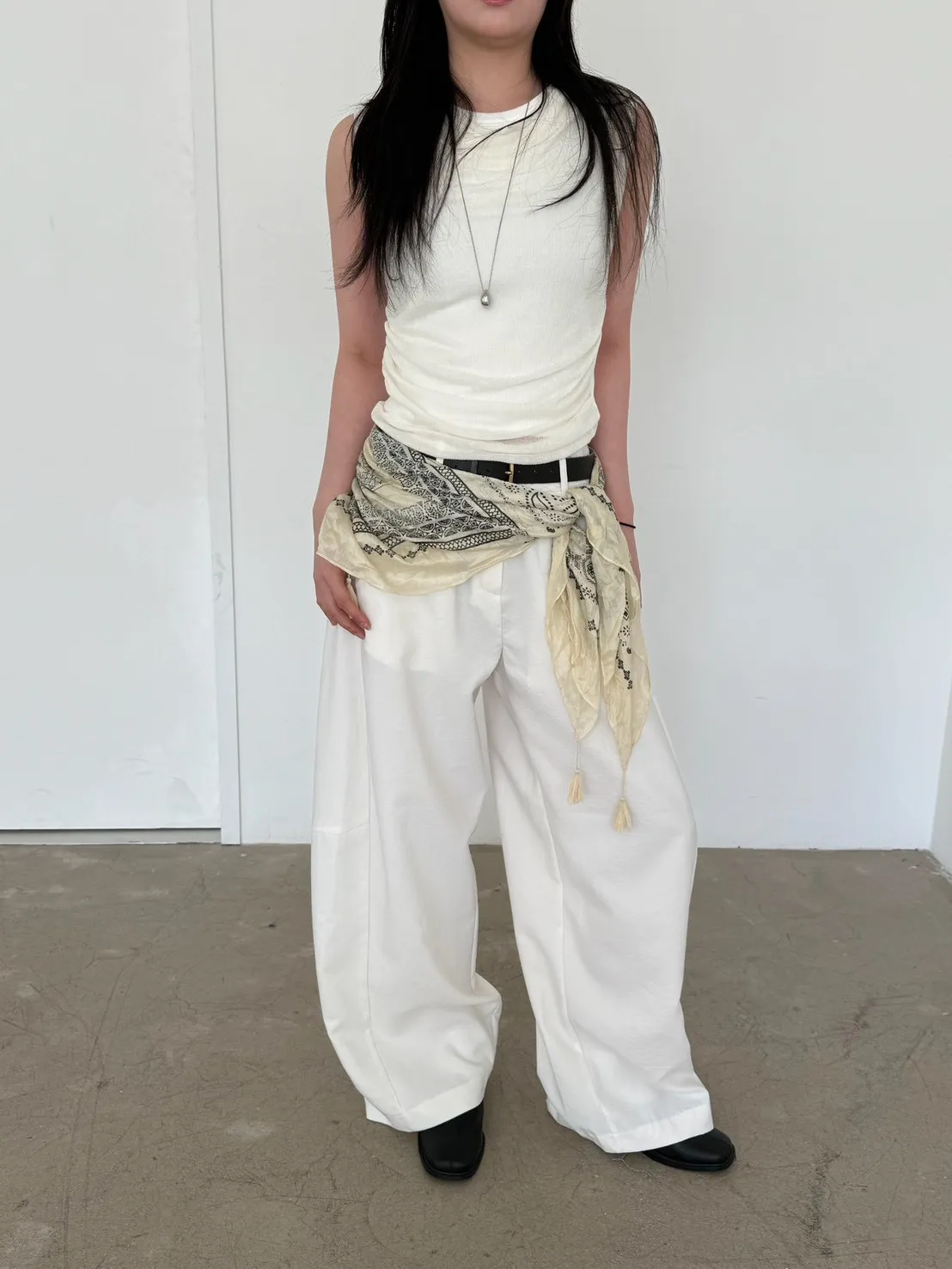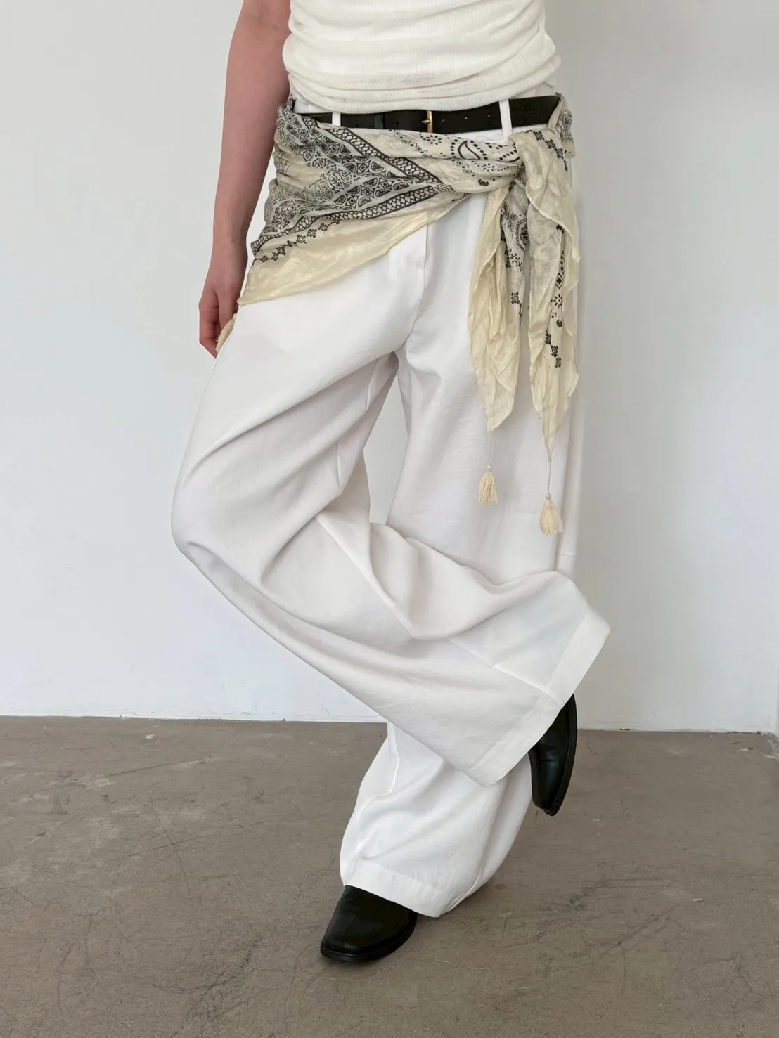 「韓國」鬆弛感垂墜西裝褲.米白