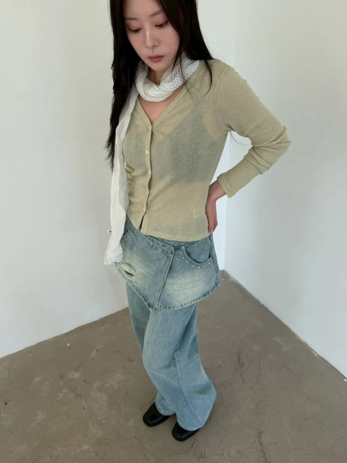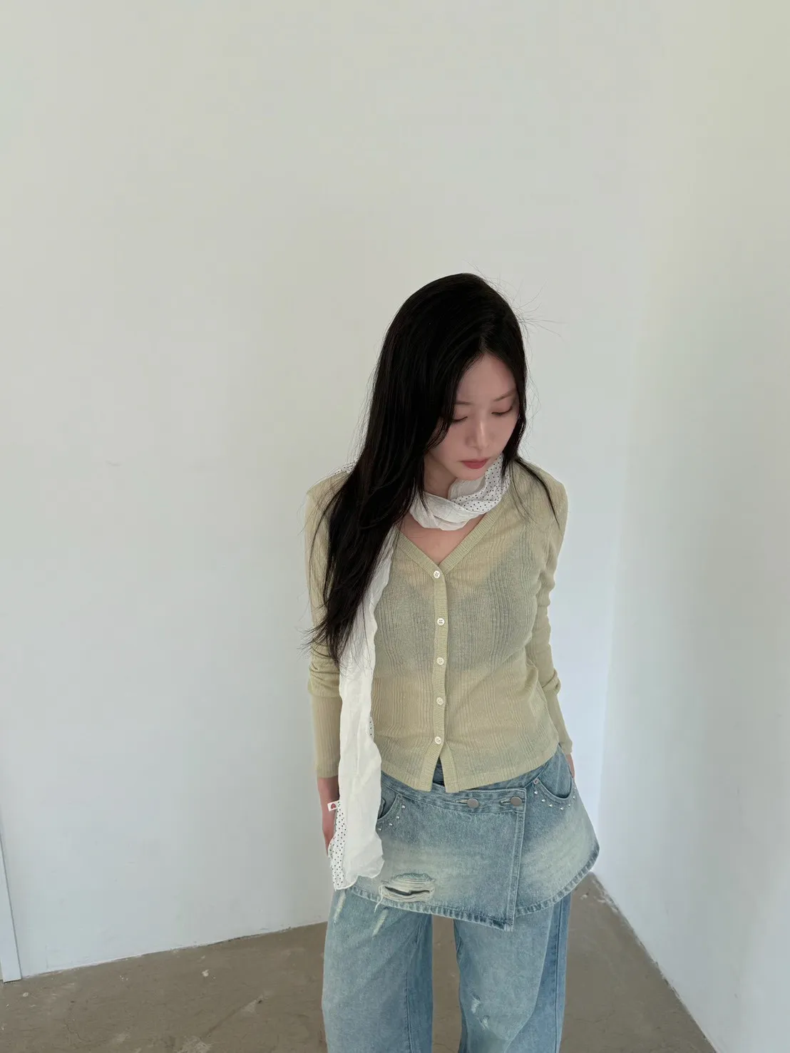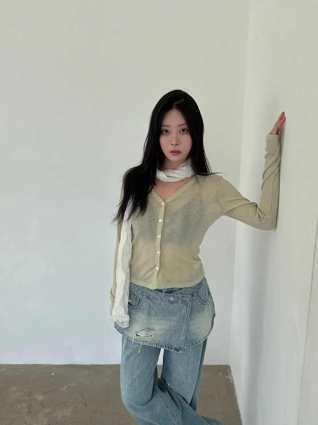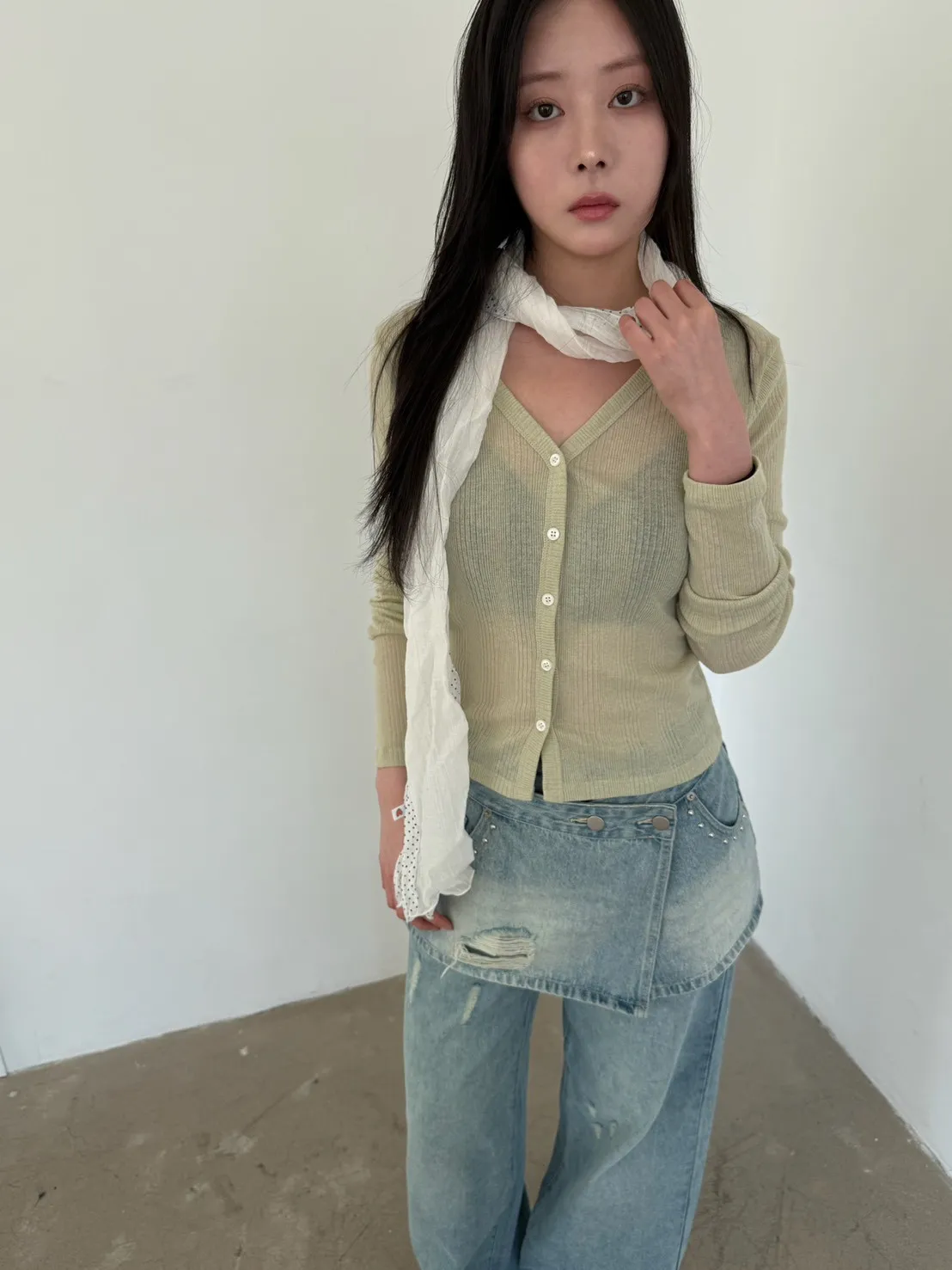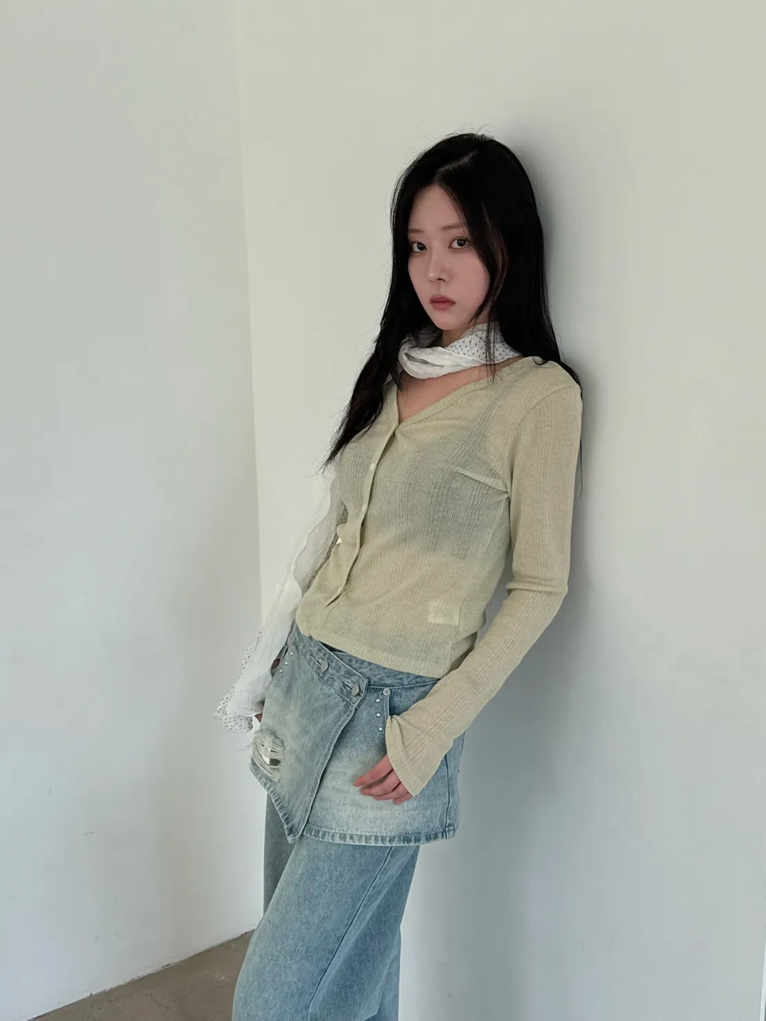 「韓國」奶油花園針織小外套.奶綠