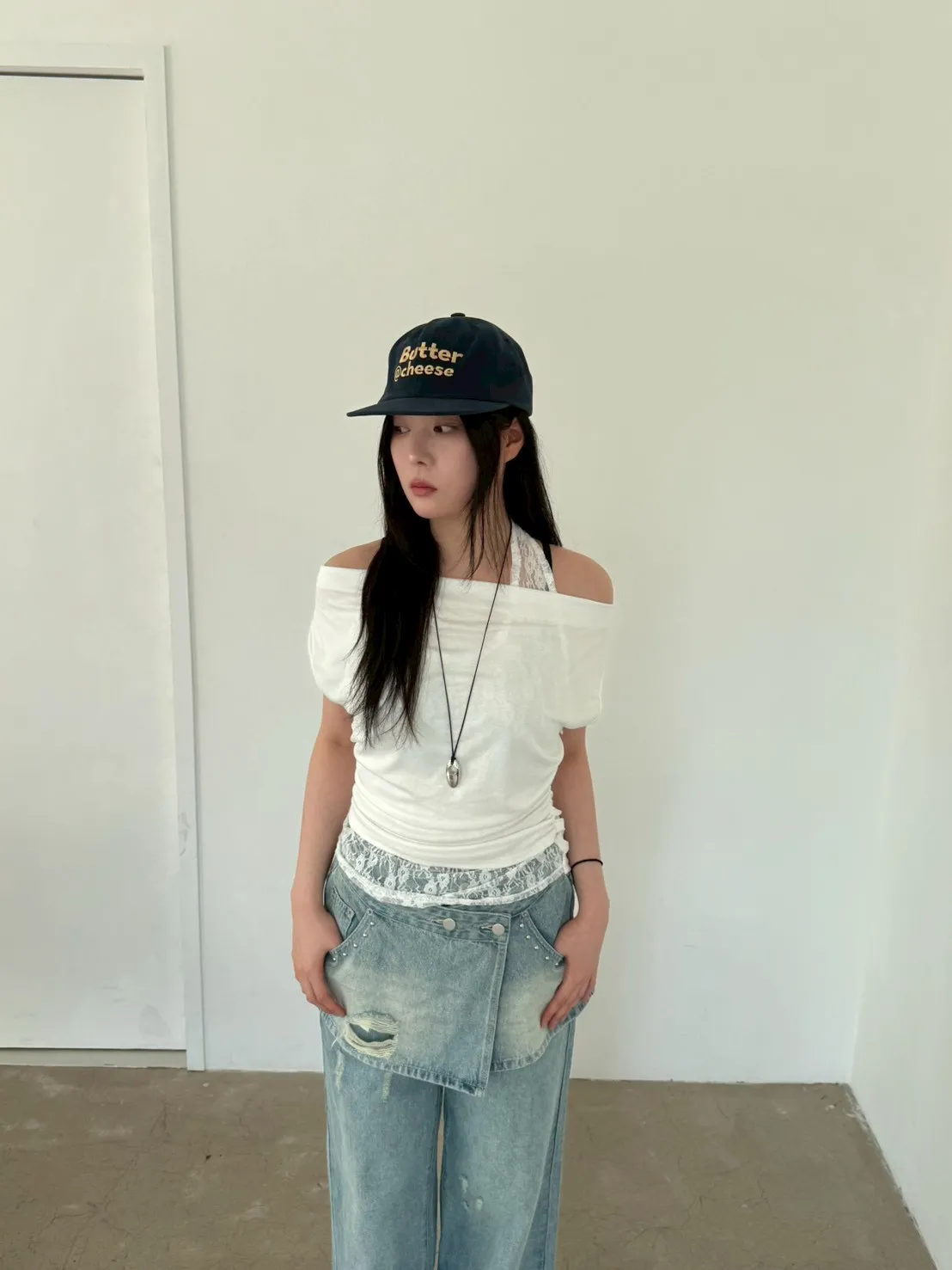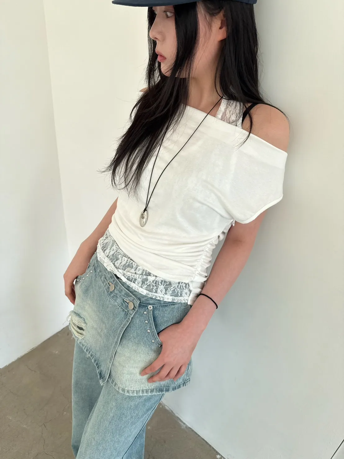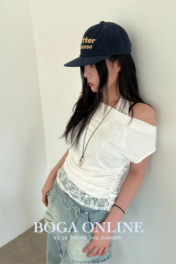 「韓國」春季的邂逅!蕾絲垂墜上衣.白