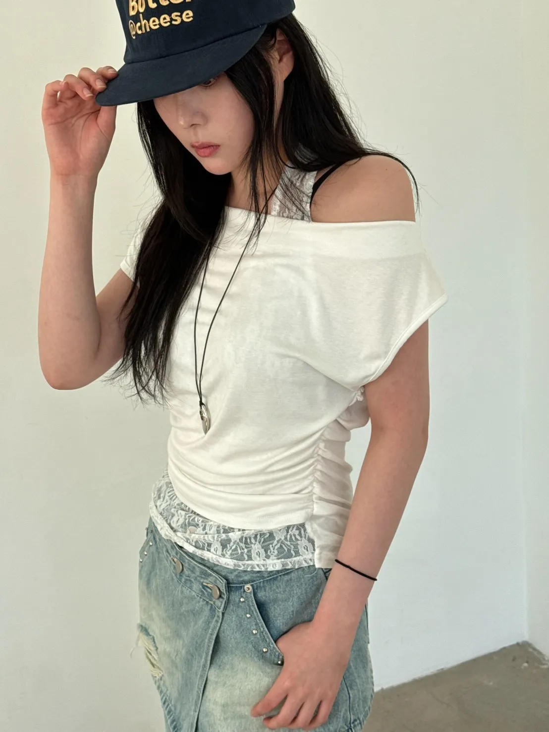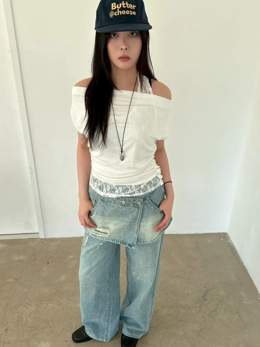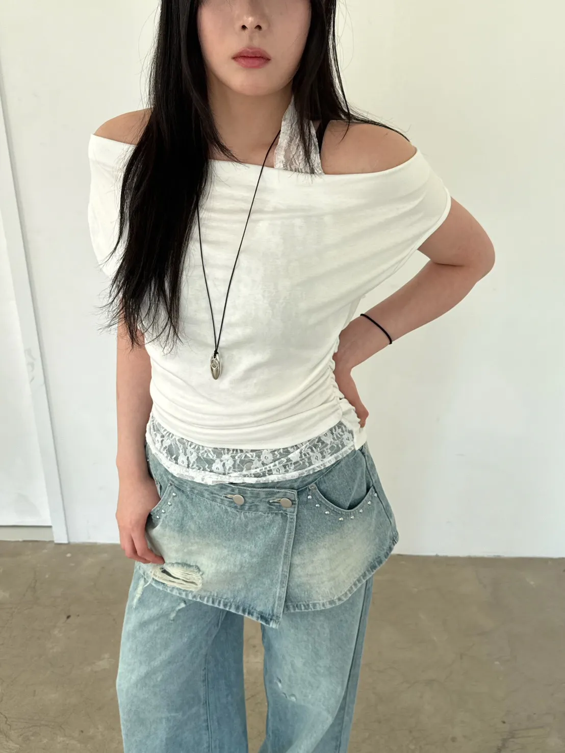 「韓國」春季的邂逅!蕾絲垂墜上衣.白