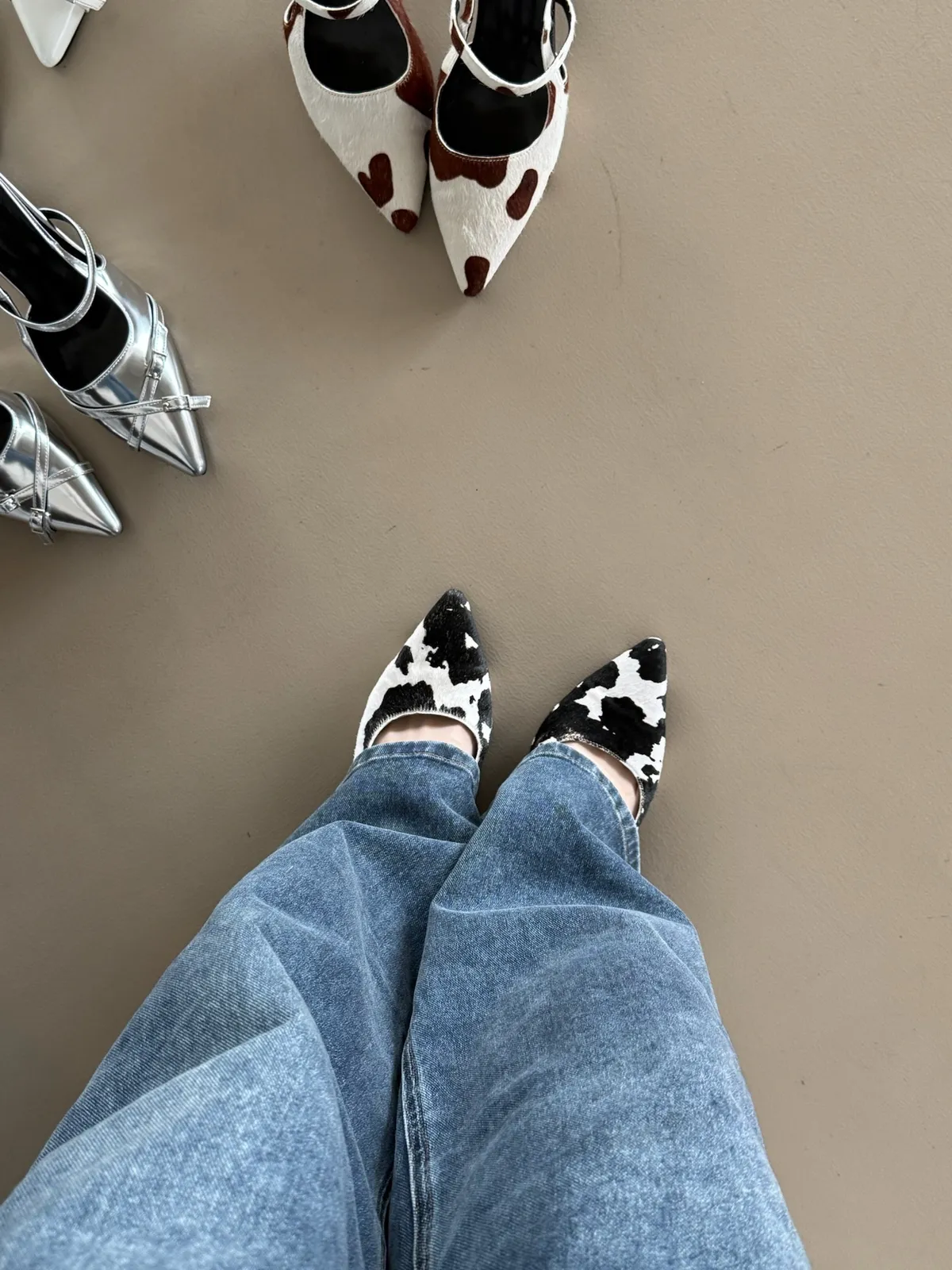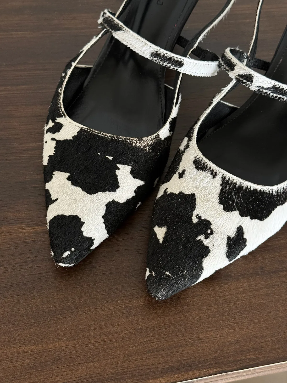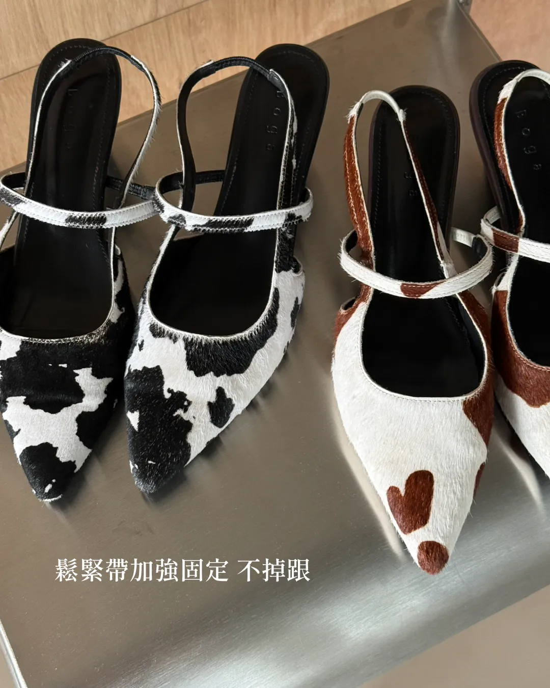 跟高2.5cm 建議帶大半號拿 【預購注意事項】 預購等候時間約為 7–28 個工作天(不含假日)實際到貨時間仍需依韓國廠商追加進度為準 選用細緻馬毛材質,表面呈現自然光澤,在光線下帶有低調而柔和的層次感。相較一般材質,馬毛更具立體紋理與質感,不僅提升整體造型精緻度,也讓穿搭更有份量 乳牛布料採用整片裁製,因此每一雙鞋上的乳牛紋分佈位置皆不相同, 呈現自然隨機的效果。也讓每件商品都擁有專屬的個性與質感。 可以接受再下單!